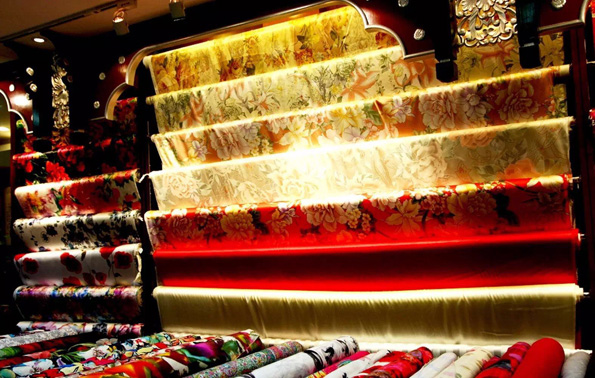 都說(shuō)定制旗袍禮服要到瑞蚨祥,其實(shí),與其等上15天的工期,不如在那里買(mǎi)件現(xiàn)成的中式大褂。從有精致盤(pán)扣繡龍祥云的香云紗手繡上衣(2500元),再到平日可隨意穿著的天青色棉麻中式改良大褂(480元/件),白布袖口窄窄地卷著,看著就舒服。